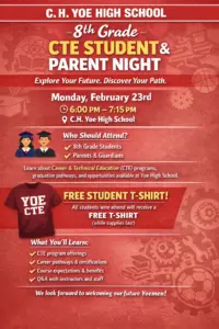 (CAMERON) 8th Grade CTE Parent Night We are hosting an 8th Grade Student & Parent Night for our CJH 8th graders. Our CTE Department teachers will be on hand from 6:00 PM – 7:15 PM on Monday, February 23rd to answer any questions you might have about all of our wonderful CTE pathways.