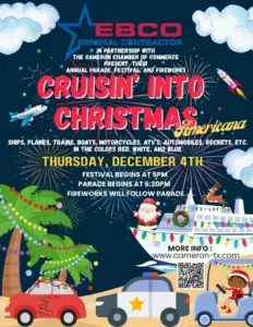 EBCO General Contractors, in partnership with the Cameron Chamber of Commerce, invites YOU to join our Annual Christmas Parade — “Cruisin’ Into Christmas: Americana!”